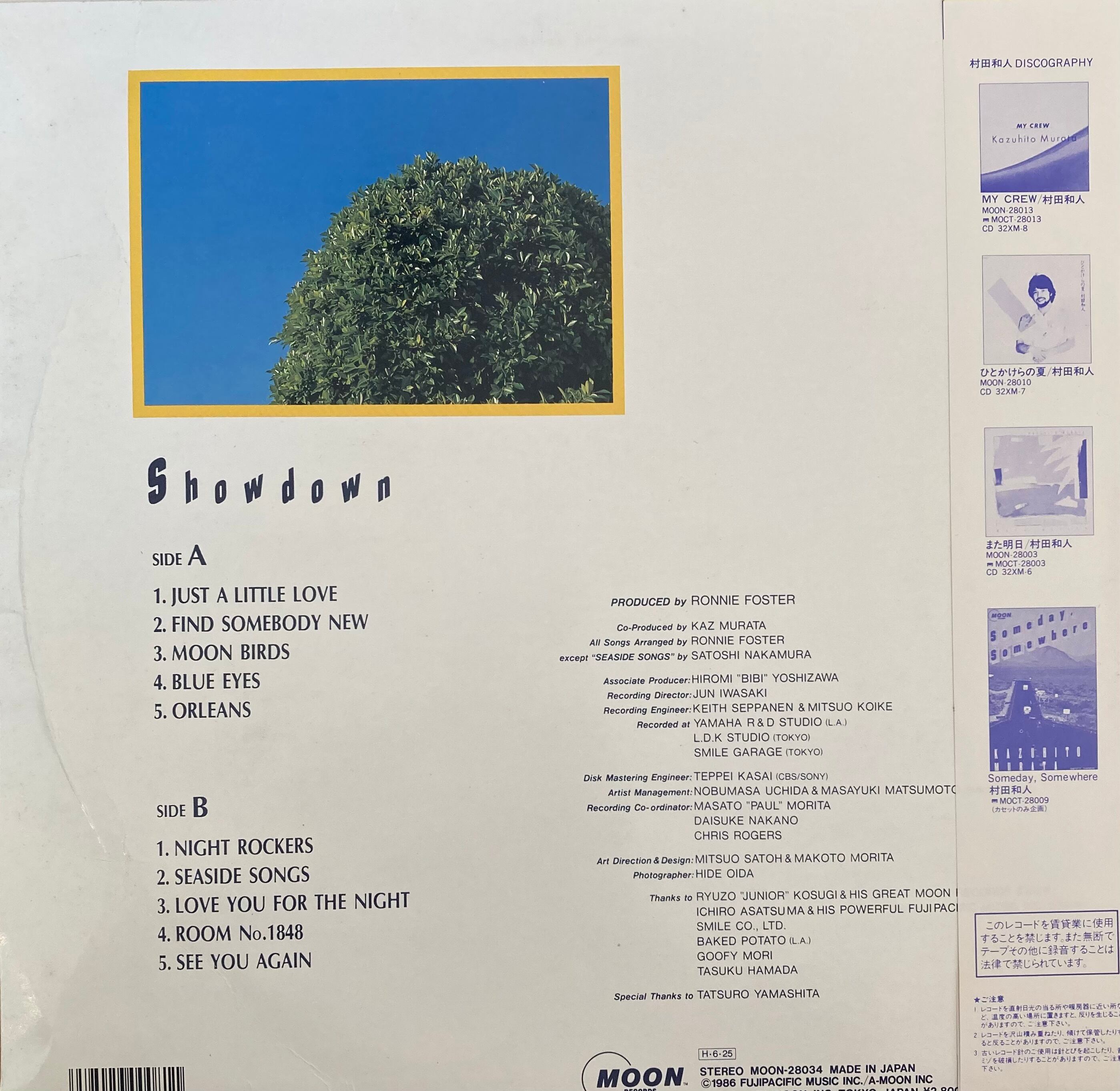 ガイド本「Japanese City Pop」「Light Mellow和モノ」掲載。 Special Thanks に山下達郎。ロサンゼルス録音によるロニー・フォスター/プロデュース作。作詞には吉田美奈子、竹内まりや参加。A2「Find Somebody New」のコーラスには山下達郎が参加したシティポップ名盤。