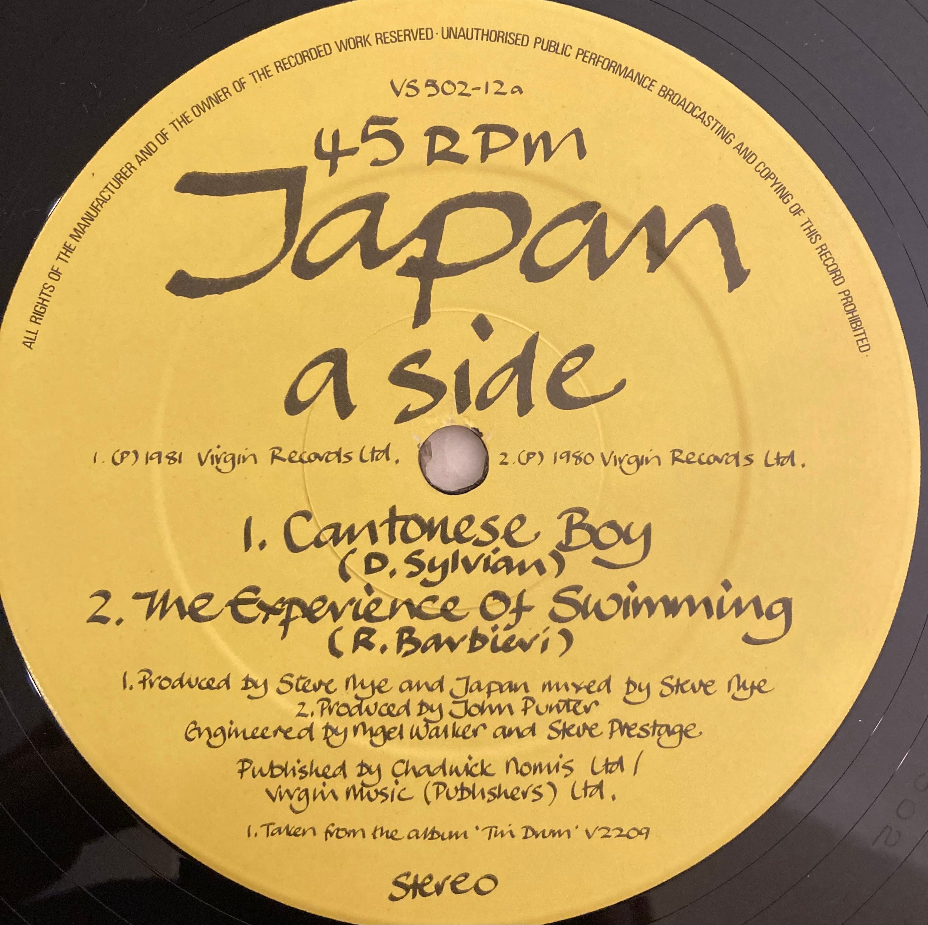 アルバム「Tin Drum」に収録された「Cantonese Boy」オリエンタルな名曲12inch。