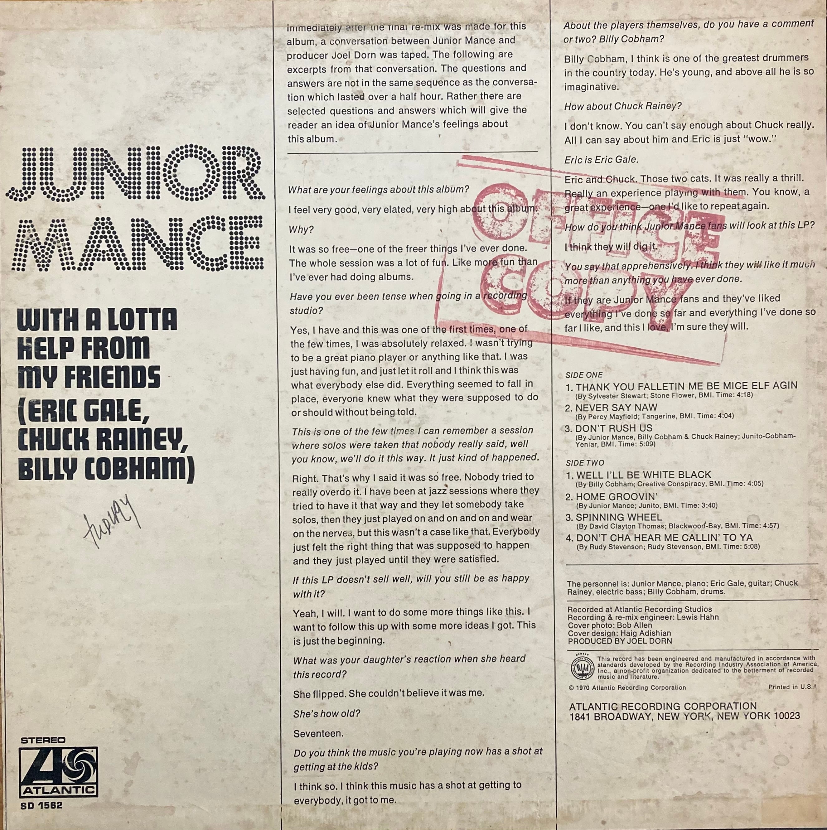 Chuck Rainey / Billy Cobham / Eric Gale等が参加したジャズ・ピアニストJunior Mance70年作。サンプリングソースとしても使われるドラム・ブレイク等収録したジャズ・ファンクの名盤。