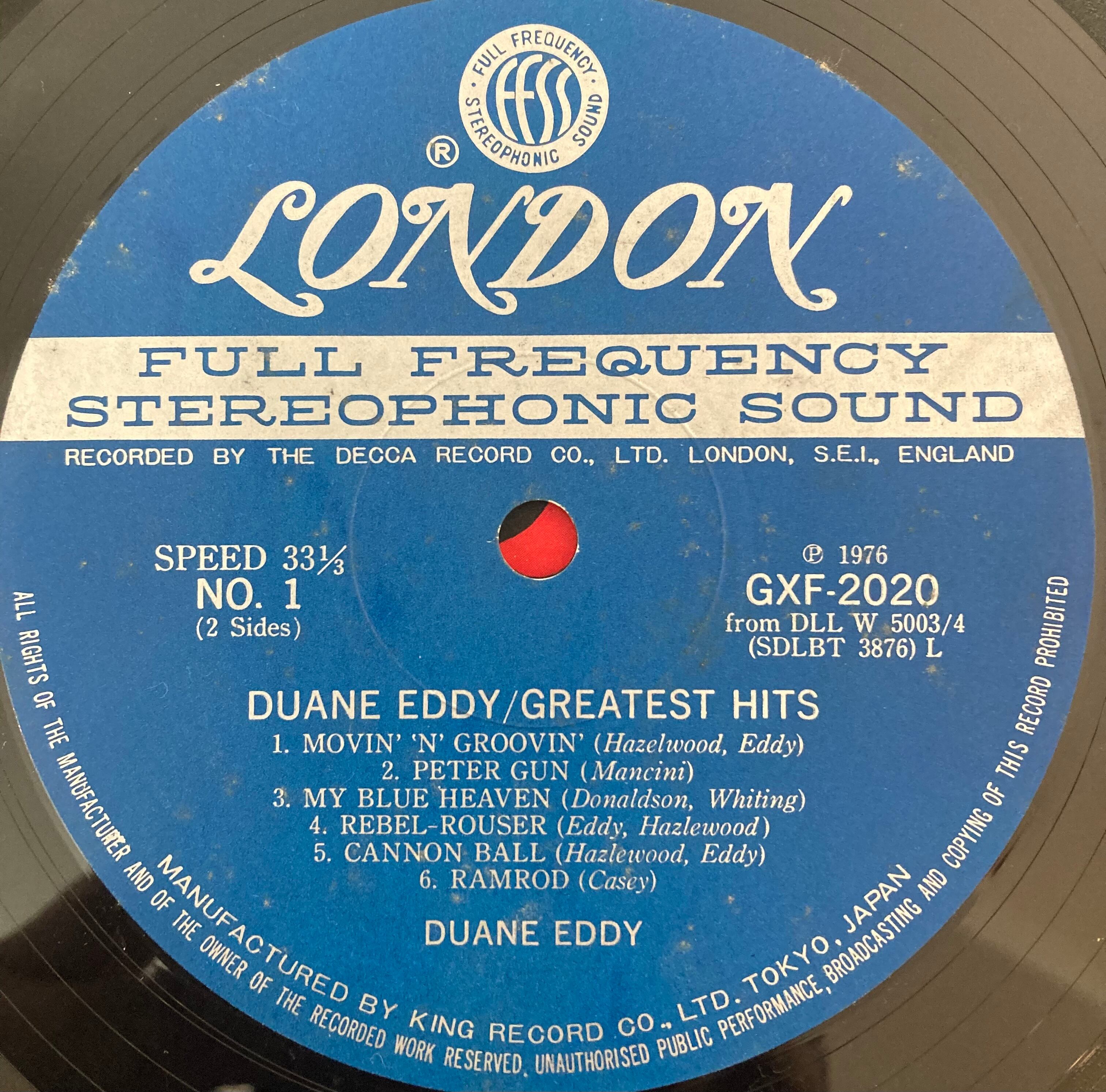 50年代後半から60年代初頭にかけて活躍した"Twangy Sound "のインストゥルメンタル・ギタリスト"Duane Eddy "76年ベスト盤。