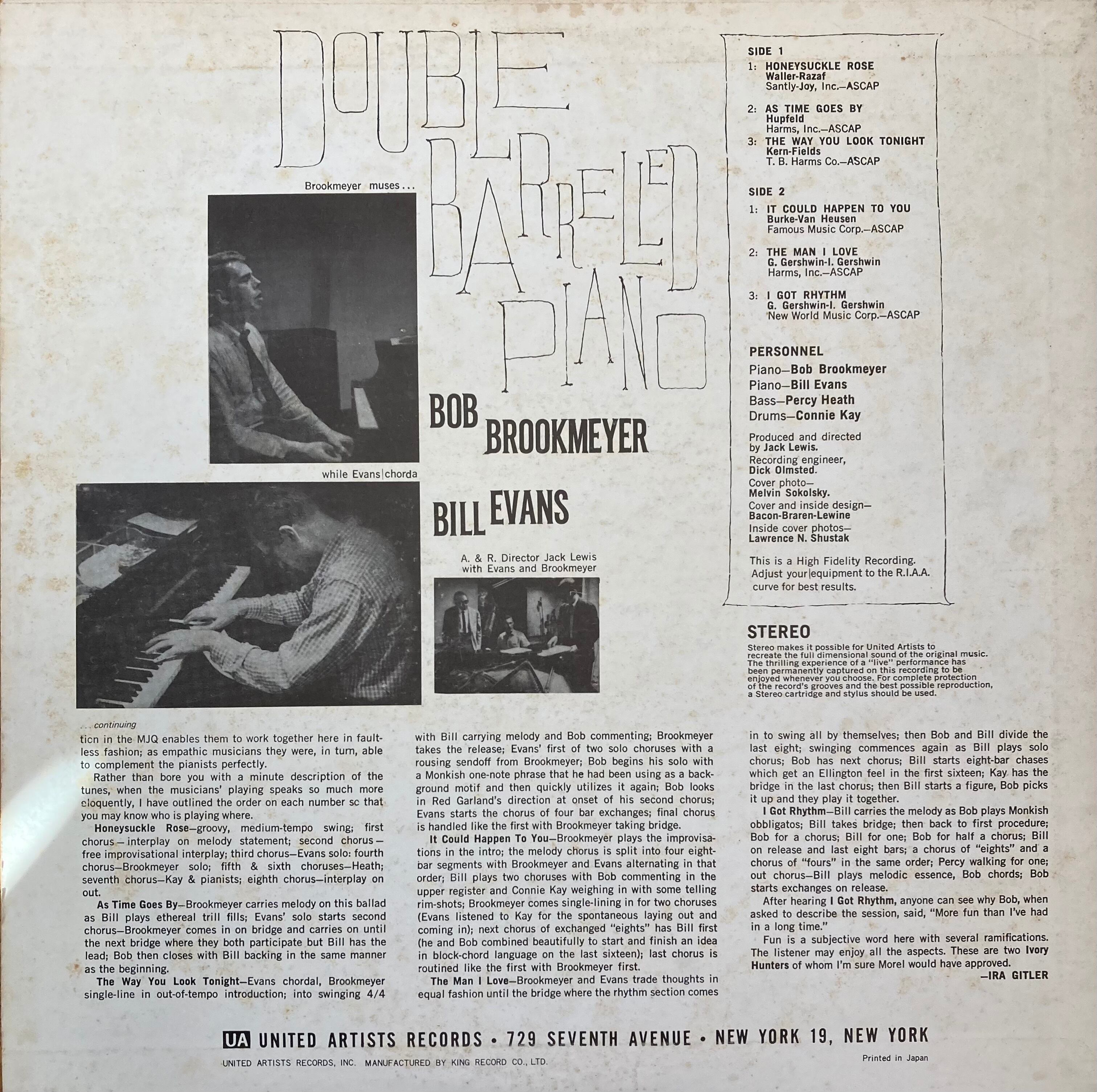 59年にビル・エバンスとトロンボーン奏者ボブ・ブルックマイアーがピアニストとして共演したダブル・ピアノ・アルバム。